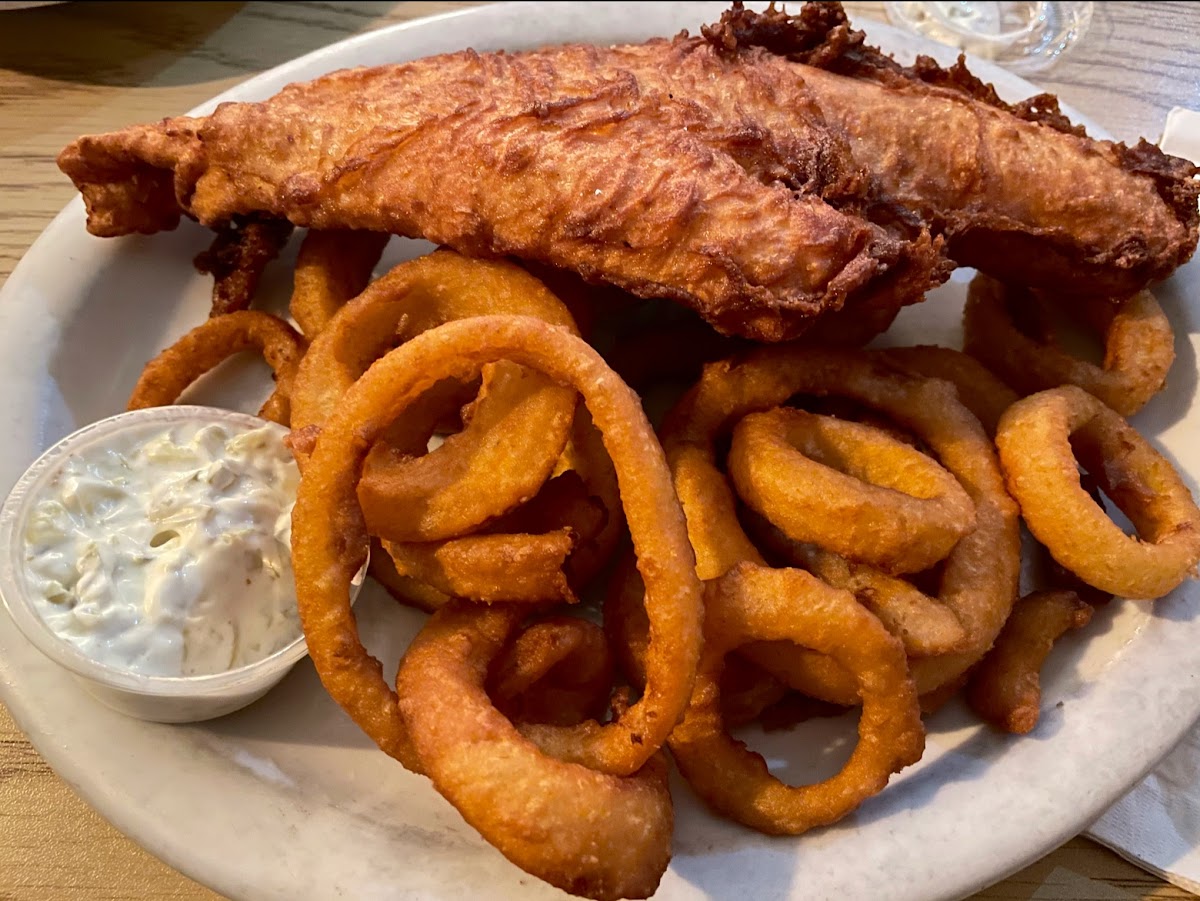 For those who prefer classic pub fare, Mullen's Pub offers a fantastic Burger with Fries, a satisfying dish that’s always cooked to order. The juicy burger, paired with crispy fries, is a crowd-pleaser that never disappoints. If you're a fan of fish and chips, you’re in for a treat with their Fish & Chips served alongside crispy onion rings. The fish is perfectly battered and fried, while the onion rings add a nice crunch to every bite.
