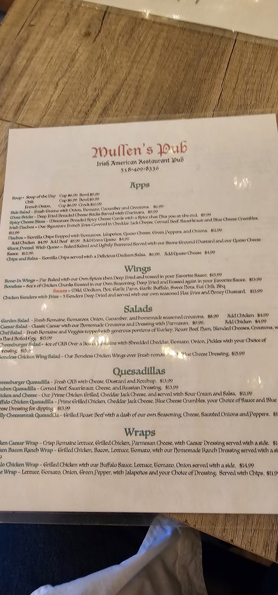 Mullen's Pub delivers a menu that balances comforting classics with fresh, flavorful options. The Broccoli Cheddar Soup is a rich and creamy starter that sets a warm tone for the meal, while the Salmon entrée impresses with its perfectly cooked, flaky texture and vibrant seasoning. For those craving hearty fare, the Burger with Fries hits the mark with juicy, well-seasoned beef paired with crisp, golden fries. The Fish & Chips Onion Rings offer a satisfying crunch and generous portion, embodying the pub’s knack for indulgent, crowd-pleasing dishes. Desserts are equally enticing, with the Key Lime Pie delivering a zesty sweetness that rounds out the dining experience. The menu also features refreshing beverages, highlighted by the freshly made Juice, which complements both light and robust dishes. Overall, Mullen's Pub presents a thoughtfully curated selection that satisfies a variety of tastes, making it a reliable choice for both casual meals and more celebratory occasions.